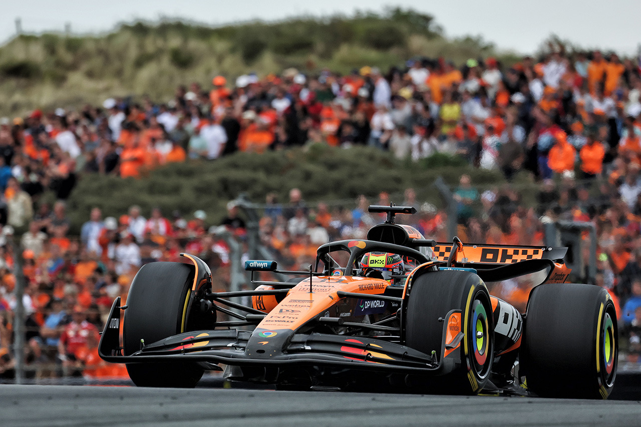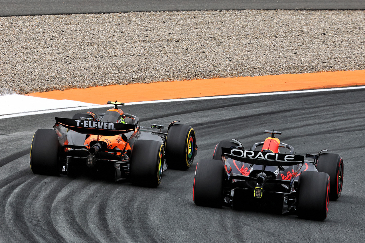 オランダGP決勝レースは、スタートして間もなくの降雨予報の下で始まった。オスカー・ピアストリ(マクラーレン)がホールショットを決める一方で、ランド・ノリス(マクラーレン)はマックス・フェルスタッペン(レッドブル)に2番手を奪われてしまう。